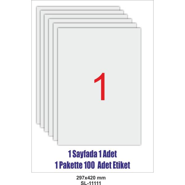 Pakette 100 Adet A3 tek parça etiket