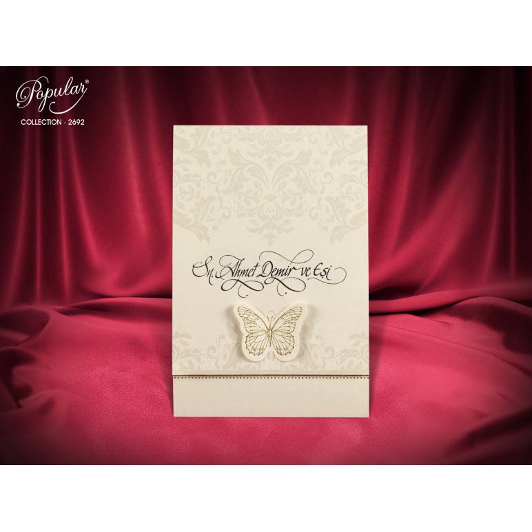 Altın Varak Kelebek Desenli Davetiye - 2692