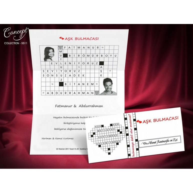 Aşk Bulmacası Temalı Davetiye - 5511 200 Adet