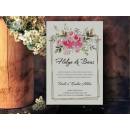 Çiçek desenli ekonomik düğün davetiyesi.2 parçadan oluşur. İçeriğinde kart, zarf bulunur.