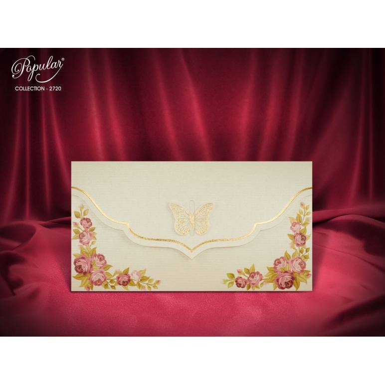 Çiçek Desenli ve Kabartma Kelebekli Davetiye - Popular 2720
