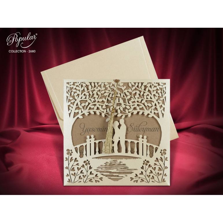 Gelin Damat ve Birleşen Kalpler Lazer Kesimli Davetiye - Popular 2680