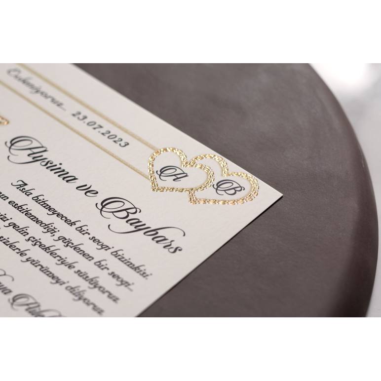 Burada gördüğünüz davetiyeler hazır raf ürünüdür. Sadece sizin bilgilerinizin basılacağı alanlar boştur. Onun dışında kartta veya zarfta bulunan desenler, şekiller değiştirilemez, rengi ile oynanamaz, ilave eklenti yapılamaz.