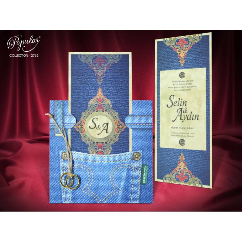 Jean Desenli Düğün Davetiyesi - Popular 2762