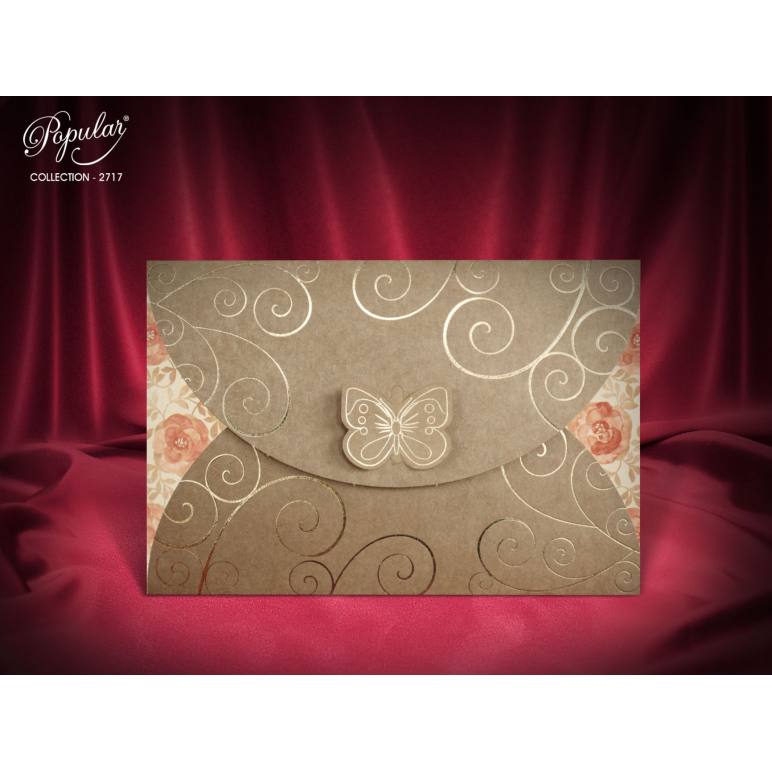 Kabartma kelebek desenli çiçek baskılı kraft davetiye - Popular 2717