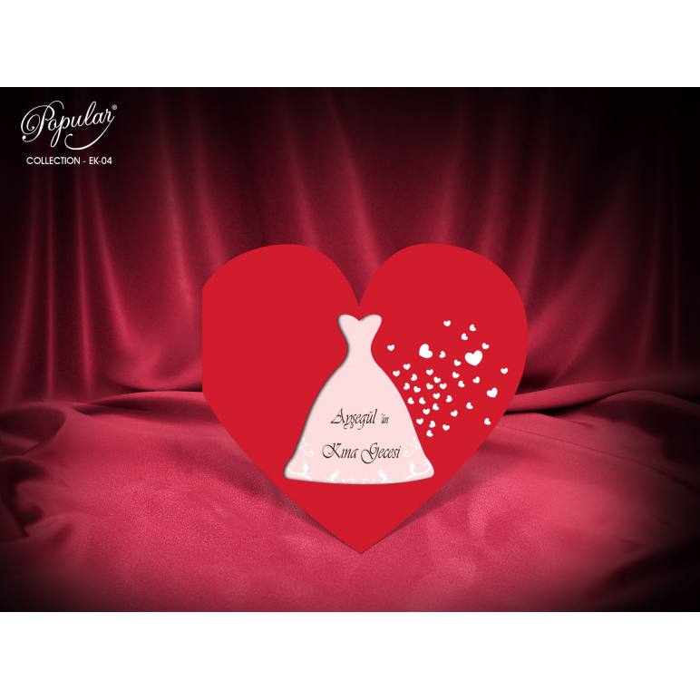 Kırmızı Kalp kesimli kına kartıBu davetiye 1 Parçadan Oluşur. İçeriğinde Kart bulunur