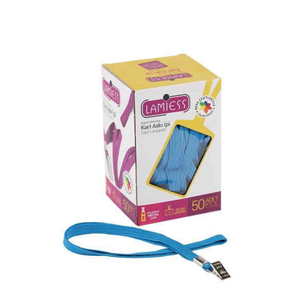 LAMİESS KART ASKI İPİ METAL MAŞALI KLİPSLİ MAVİ 50 'Lİ
