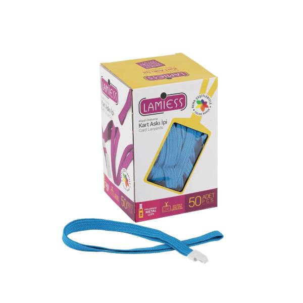 LAMİESS KART ASKI İPİ PLASTİK KANCALI MAVİ 50 'Lİ