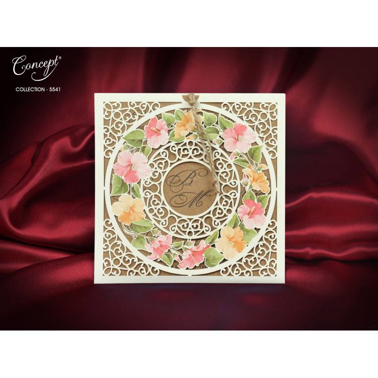 Lazer Kesimli, Çiçek Desen Baskılı Davetiye - 5541