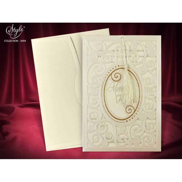 Lazer Kesimli, Sedef Renkli Lüks Davetiye - 3694