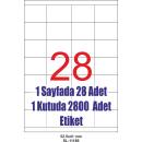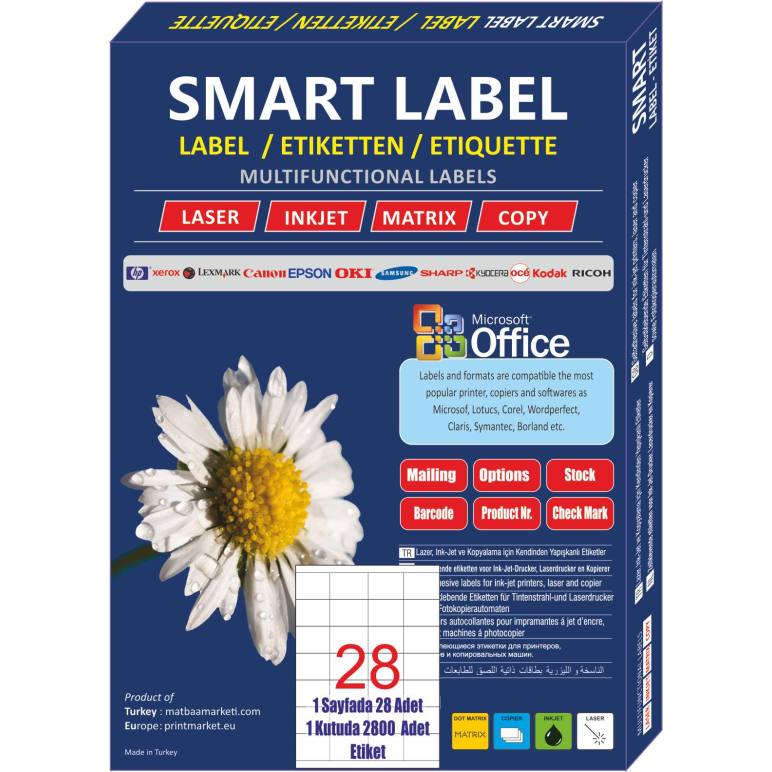 Bir tabakada 28, bir pakette 2800 adet etiket bulunmaktadır.Lazer, Inkjet, Matrix ve Kopyalama sistemlerinde rahatlıkla kullanabilirsiniz.